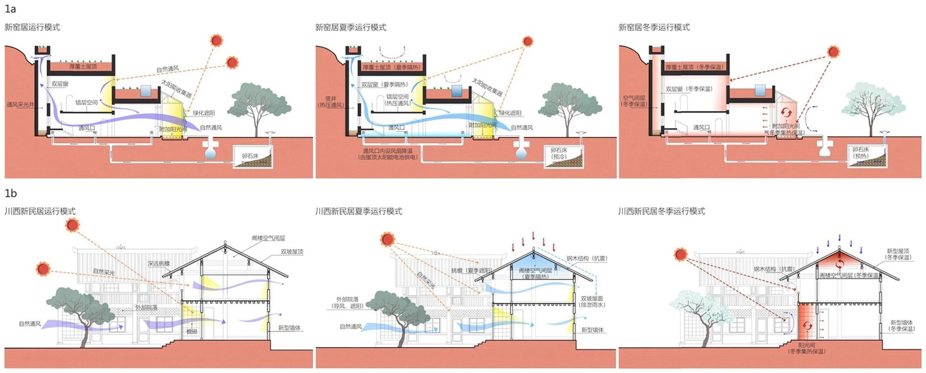 1 民居新模式(a黃土高原地區(qū)綠色窯洞;b川西綠色民居)①