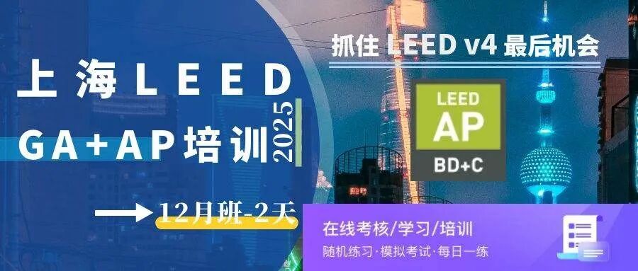 【上海】LEED GA+AP考前沖刺( BD+C聯考班)本年度12月最后v4版上車機會