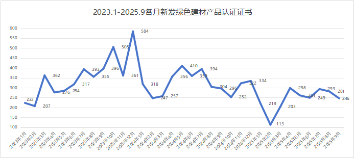 2025年第三季度綠色建材產品認證證書分布信息