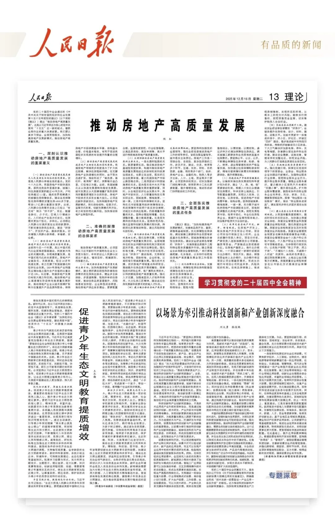 《人民日?qǐng)?bào)》發(fā)表倪虹署名文章:推動(dòng)房地產(chǎn)高質(zhì)量發(fā)展