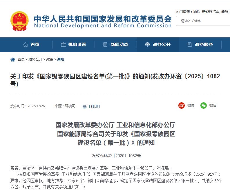 2025 年 12 月 26 日,國家發展改革委等部門正式發布《國家級零碳園區建設名單(第一批)》,52 個園區從全國眾多國家級、省級園區中脫穎而出,組成零碳建設 "重點班"。這份覆蓋 31 個省(區、市)和新疆生產建設兵團的名單中,一個顯著特征引發關注:廣西、福建、河北、吉林四省各有 3 個園區入選,而其他地區多為 1-2 個。