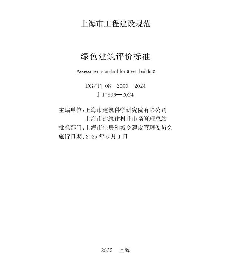 時(shí)間:2026-01-02 14:18:35 作者:GBWindows 來(lái)源:行業(yè)網(wǎng)站 閱讀:565內(nèi)容摘要:為更好地銜接《上海市綠色建筑條例》,支撐上海市綠色建筑項(xiàng)目評(píng)價(jià)工作,促進(jìn)綠色建筑全產(chǎn)業(yè)鏈高質(zhì)量發(fā)展,上海市工程建設(shè)規(guī)范《綠色建筑評(píng)價(jià)標(biāo)準(zhǔn)》(DG/TJ08-2090-2024)已由上海市住房和城鄉(xiāng)建設(shè)管理委員會(huì)批準(zhǔn)發(fā)布,將于2025年6月1日起正式實(shí)施。修訂內(nèi)容該標(biāo)準(zhǔn)在定義范疇、技術(shù)要求、實(shí)施支撐等方面與《上海市綠色建...為更好地銜接《上海市綠色建筑條例》,支撐上海市綠色建筑項(xiàng)目評(píng)價(jià)工作,促進(jìn)綠色建筑全產(chǎn)業(yè)鏈高質(zhì)量發(fā)展,上海市工程建設(shè)規(guī)范《綠色建筑評(píng)價(jià)標(biāo)準(zhǔn)》(DG/TJ08-2090-2024)已由上海市住房和城鄉(xiāng)建設(shè)管理委員會(huì)批準(zhǔn)發(fā)布,將于2025年6月1日起正式實(shí)施。