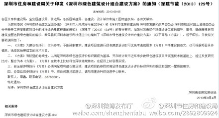 @深圳微博發布廳: 關于印發《深圳市綠色建筑設計組合建議方案》的通知 @綠色夢想-深圳 :為加強對深圳市綠色建筑設計工作的指導、服務,確保新建民用建筑全面達到綠色建筑的要求,委托深圳市建設科技促進中心編制了《深圳市綠色建筑設計組合建議方案》(以下簡稱《方案》),現予印發。