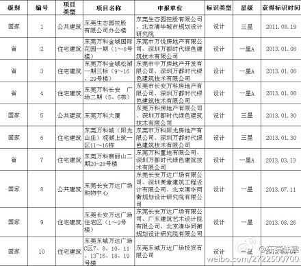 @東莞住建: 目前東莞市獲得綠色建筑評(píng)價(jià)標(biāo)識(shí)的項(xiàng)目一共有10項(xiàng),均屬于設(shè)計(jì)評(píng)價(jià)標(biāo)識(shí),其中除了東莞生態(tài)園控股4限公司辦公樓是屬于公共建筑外,其余均為房地產(chǎn)項(xiàng)目,屬于居住建筑。