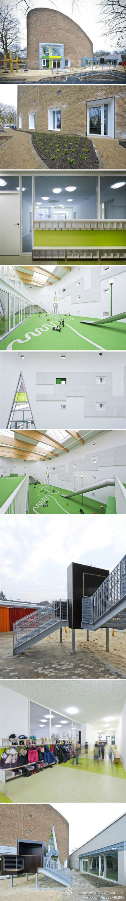 @上海房地產總工俱樂部SHREEC:綠娼ㄖ這一教堂的低層,也就是1-3層,現在用作幼兒園。游 樂室中的墻面采用了吸音板設計,總共有140平米。地面上鋪著綠草式的人造地板。還有一個巨大的人手掌形狀的圖案。另外,在教堂與街道所環繞的區域中,設置了一塊空場,媽媽們可以在這地等孩子們下課、也可以觀看孩子們的一些戶外活動。
