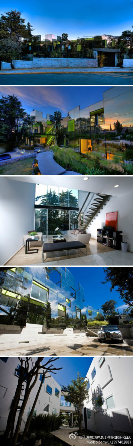 @上海房地產(chǎn)總工俱樂部SHREEC: 綠色建筑 這是個(gè)在40年前的老建筑上進(jìn)行改造和優(yōu)化的項(xiàng)目,設(shè)計(jì)師選擇兩種建筑外墻材料,向外的南墻選擇了青銅的反光玻璃,除了能保護(hù)建筑內(nèi)住戶的隱私之外,還可以過濾過剩的陽光,玻璃有很顯著的隔音效果,在保證不損失屋內(nèi)風(fēng)景的同時(shí)。新增了內(nèi)部的天井花園,使整個(gè)建筑都能有更好地采光和通風(fēng)。