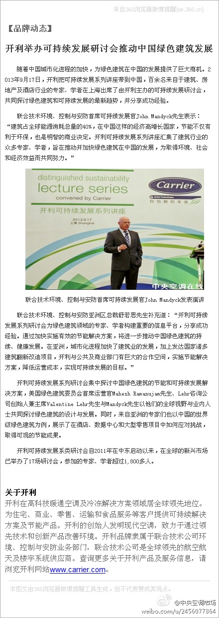 2.開利舉辦可持續(xù)發(fā)展研討會(huì)推動(dòng)中國綠色建筑發(fā)展