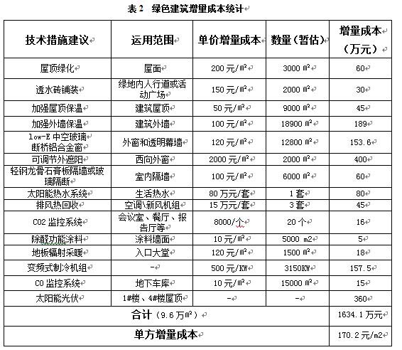經(jīng)統(tǒng)計(jì),本項(xiàng)目一期綠色建筑總增量成本約為1634.1萬元,單位面積增量成本約為170.2元/m2,綠色技術(shù)的應(yīng)用使大廈年節(jié)約運(yùn)行費(fèi)用約為182.3萬元,投資回收期8.9年。