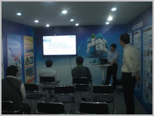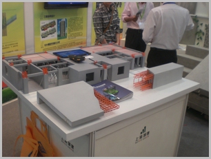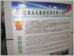 元大建筑科技有限公司。展臺緊挨著“遠大住工”,一開始誤以為是一家的。公司主要從事混凝土預制構件的生產。據介紹其特點是:全套工業化建筑:鋼筋桁架模板、工業化住宅混凝土預制構件、節能門窗等,生產方式為:設計標準化、生產工廠化、施工裝配化、產業現代化