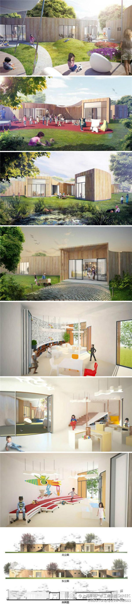 @上海房地產(chǎn)總工俱樂部SHREEC:綠色建筑 “及時之家”幼兒園:這一幼兒園有679平方米。幼兒園以兩種形狀的模塊進行設(shè)計:如何使各功能區(qū)相連以及房間的功能分區(qū)如何設(shè)置。這是因為不同類型模塊的設(shè)置就會產(chǎn)生各自s同的功能分區(qū)與整體結(jié)構(gòu),從而導(dǎo)致不同的建筑體。但是,位于中心的中央花園成為所有變化的一個核心元素。
