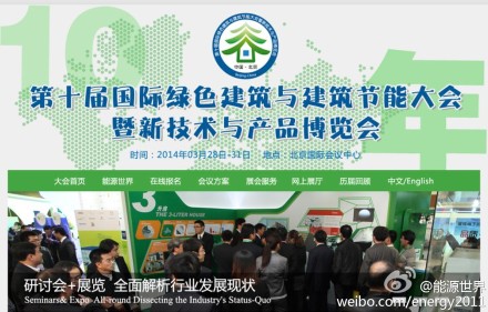 @能源世界:2014年3月28日至30日,“第十屆國際綠色建筑與建筑節能大會暨新技術與產品博覽會”將在北京國際會議中心召開,此次大會由中國城市科學研究會、中國綠色建筑與節能專業委員會和中國生態城市研究專業委員會聯合主辦,主題為“普及綠色建筑,促進節能減排”。