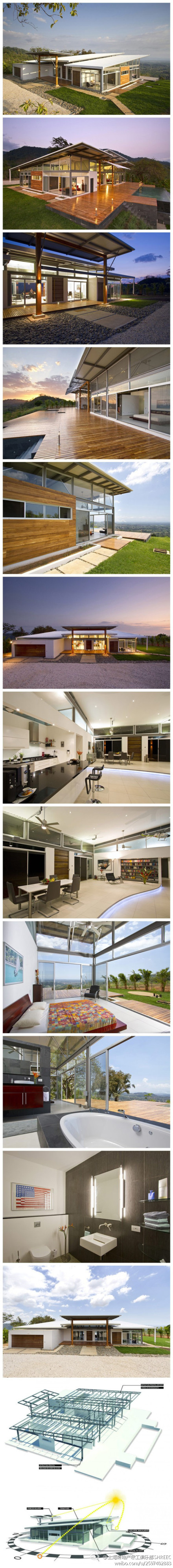 @上海房地產總工俱樂部SHREEC2 綠色建筑 Casa Mecano住宅位于哥斯達黎加的奧薩,由Arquitectos設計。它能完全適應當地的環境。住宅通過使用一個自動化系統讓舒適的生物小氣候產生,同時通過控制裝有滑輪系統的窗子和屋頂,能手動更改窗子的位置和屋頂傾斜的角度,促進室內的熱能散發,保證空氣質量,讓屋2變得更加舒適。