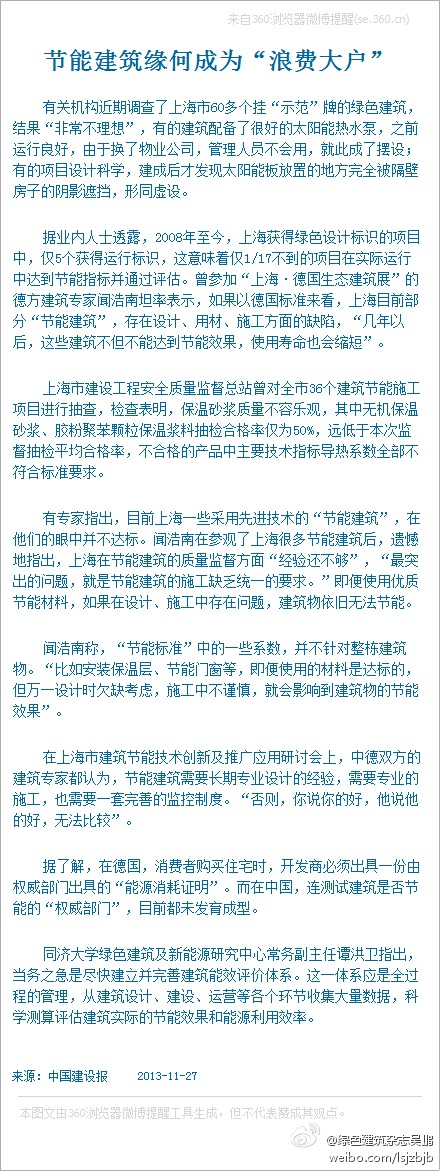 綠色建筑行業每日熱點微博精選(2014年01月08日)