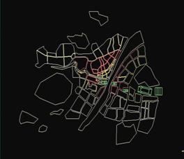 將復雜的城市轉化為可在CFD中進行仿真模擬的數字模型,一方面,城市中不同地區的建筑密度、人口密度和綠化程度等相應的分布都會有很大的差別。在受到相同的城市氣=條件影響時,其所表現出的溫度、太陽輻射溫度、舒適度、大氣壓等特征也會大相徑庭。在研究氣候環境對城市小氣候的影響時,對城市的不同地塊進行一定的區塊劃分成為一個十分必要的工作。另一方面,在CFD中建立城市數字模型進行分析研究時,由于城市中各種因素的多樣性,建立數字模型其工作量也會非常大。通過對城市中不同地區的分析調查,將相似特征的地區作為一個整體進行分析研究,給研究城市大氣候對城市以及城市中不同地區之間的相互影響提供了十分便利的手段。因此,根據城市的現有布局情#以城市主要干道、山體、河流、湖泊等各種條件為界限,將城市分為不同的區域地塊,建立CFD的城市數字模型。