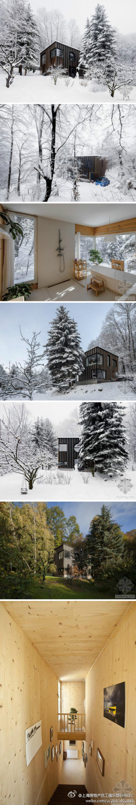 @上海房地產總工俱樂部SHREEC:綠色建筑 這是由T2.a Architects設計的匈牙利森林小木屋。旨在實現人、自然與經濟三方面的和諧。這座可持續的小木屋與周邊森林同樣會呼吸,它的生命由住在其間的藝術家記載。它可以在很短時間內構建,而且價格合理。在短短的一周內傳送數據給制造商以及現場完成組裝。用了預制十字型層壓膠結材板。