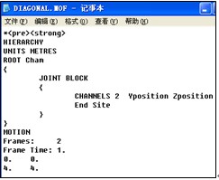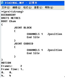 1 編寫mof文件代碼,mof文件格式很簡單,大家可以通過查閱Polis和case(Library—Virtual reality cases—MOFOR Moving Objects),有詳細案例介紹,下面就是一個簡單的mof文件,這段代碼定義了一個簡單的線性運動物體。