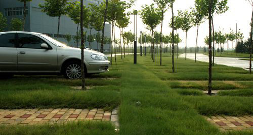道路鋪裝大量選用滲水材料,車行道與人行道交界處采用混凝土立道牙、人行道與道路綠化種植帶交界處采用混凝土平道牙。