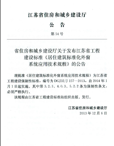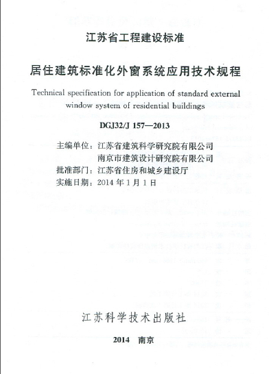 江蘇省居住建筑標(biāo)準(zhǔn)化外窗系統(tǒng)應(yīng)用技術(shù)規(guī)程DGJ32 J157-2013