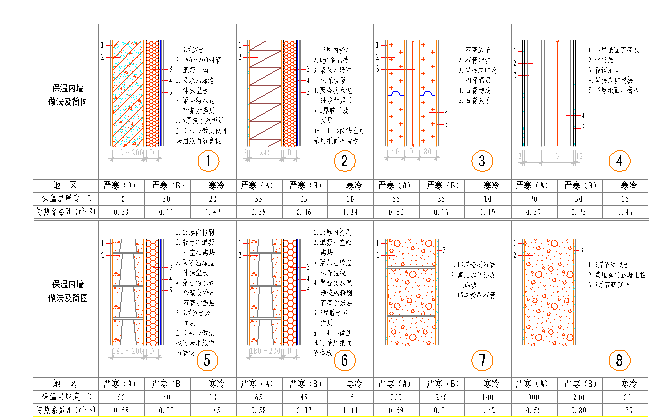 三、保溫材料的類型及選用原則從保溫材料而言,目前在建筑上較為普遍采用的是在墻體上粘貼各種發泡板材,如普通泡沫聚苯板(又稱模塑板)、擠塑聚苯板和硬質發泡聚氨酯板;第二類即棉類保溫材料,如巖棉或玻璃棉(其中也分卷材和板材)以上兩類材料均為工廠工業化制品,用粘結或錨固方法與墻體固定;第三類即現場噴涂型的保溫材料,如硬質發泡聚氨酯和安健能公司介紹的全水基軟泡氨酯。在幕墻工程中上述各類保溫材料幾乎都能使用。保溫材料的選擇取決于下列諸因素:第一 裝飾面層類型,如前所述,因為要考慮到抹灰層與保溫層以及裝飾層之間的結合和避免開裂等問題,所以如選用抹灰型裝飾面層則較為局限,幕墻型干掛板材裝飾面層,則較為自由,這是因為保溫層、裝飾層均是相對獨立的部件,因此選擇保溫層的自由度較大。第二 保溫材料的材性,主要是材料的導熱系數和熱阻值第三 施工性能,由俺гぶ頻謀N擄宀幕蠣蘩嗑聿模一般采取粘結或粘釘結合的方法與墻體固定,它的優點是施工可以不受氣候條件的限制,施行干作業操作,其缺點是工序偏多,對附墻的龍骨構件以及材料的接縫和易于產生“熱橋”的部位要采取一定的構造措施。對噴涂型的保溫材料,其優點是只要對保溫岸瓤刂魄〉筆┕そ銜簡單快捷,尤其對易于產生“熱橋”部位的處理都易于解決,保溫層的連續性好、整體性好,缺點是施工中受氣候條件有一定影響。有些噴涂型材料與墻面的粘結較差,須做界面處理,且某些材料在噴涂時對人體和環境有一定影響,(安健能公司生產的全水基軟發泡聚磅ヒ丫解決了這些問題。這無疑是對噴涂型保溫材料的一大進步。)第四 經濟問題,這里牽涉到的不僅僅是保溫材料的價格問題,應從工程的性質、材料的材性和壽命、施工的難易,保溫材料的厚度,對環境的影響等諸因素決定。經權宜得失慎重選擇,尤其在當前提倡節能的大環境下,不僅要考慮建筑的使用能耗,同時也要考慮材料在制造過程中制造能耗,有些制品,雖然有較好的熱工性能,但是屬于高能耗制品。四、墻體的熱工性能本圖集最主要的內容是以表格例圖的形式編制成選用表,將各種不同墻體和保溫材料組合,計算出選用不同材料的厚度,設計人員可根據不同氣候區的熱工要求選用,在單一墻體材料中,主要根據材料干密度、導熱系數、厚度和灰縫的精確度,經計算確定不同厚度墻的熱工性能。復合墻則主要根據不同保溫材料和墻體材性,確定復合墻體的熱工性能,設計人員可以根據不同氣候區選用符合本地區熱工要求的圍護結構做法,自由選用。在本圖集中,除對外墻羅列選用表外,還將非采暖地下室的樓板,采暖地下室的外墻,接觸室外空氣的樓板及出挑構件、地面、樓面以及室內有保溫要求的內墻一一入編供計人員選用。